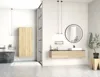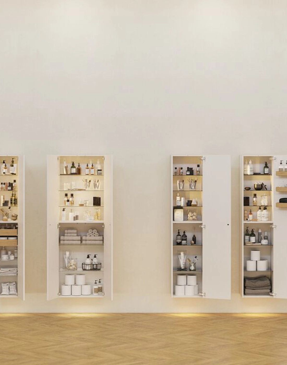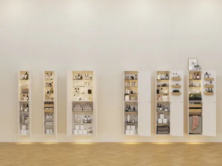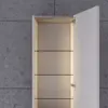 Create order and style in the bathroom with the 60 cm wide tall cabinet with smooth front in Version A. This elegant double-door tall cabinet features a wooden shelf and five spacious glass shelves, offering ample storage space for towels, toiletries, and more. The smooth front creates a minimalist and timeless design that suits any bathroom decor. This tall cabinet provides both space and elegance, making it perfect for an organized bathroom. NB: There is a start-up fee (BI2) for products with bespoke colour. It is an one-off surcharge per bespoke colour regardless number of products. Remember to add the little practical things to your bathroom furniture that you will enjoy on a daily basis. For example, lights in drawers and cabinets, built-in electrical sockets and dimmed sensor lights under the furniture to guide night-time bathroom visits. Options are ordered at the same time as your furniture.