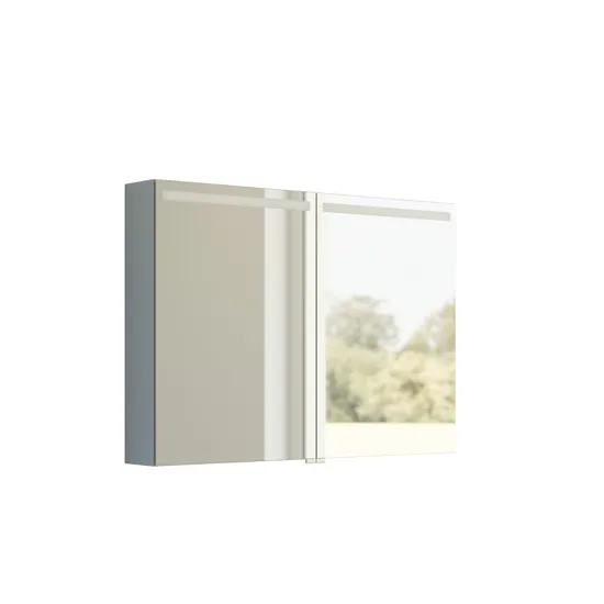 Take your morning to new heights with the Top mirror cabinet. This mirror cabinet has a lighting strip running the full cabinet width at the top of the cabinet, while inside you'll find plenty of storage space and an electrical socket with a switch. So you get much more than you might expect. Of course, the mirror cabinet is available with gables in beautiful colours, allowing you to create a uniform look in your bathroom.