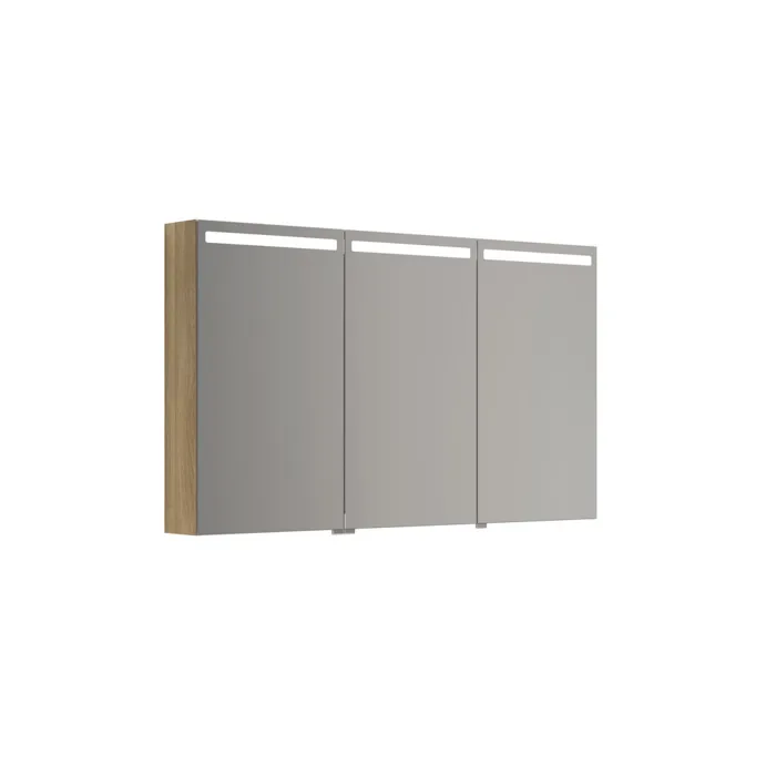 Take your morning to new heights with the Top mirror cabinet. This mirror cabinet has a lighting strip running the full cabinet width at the top of the cabinet, while inside you'll find plenty of storage space and an electrical socket with a switch. So you get much more than you might expect. Of course, the mirror cabinet is available with gables in beautiful colours, allowing you to create a uniform look in your bathroom.