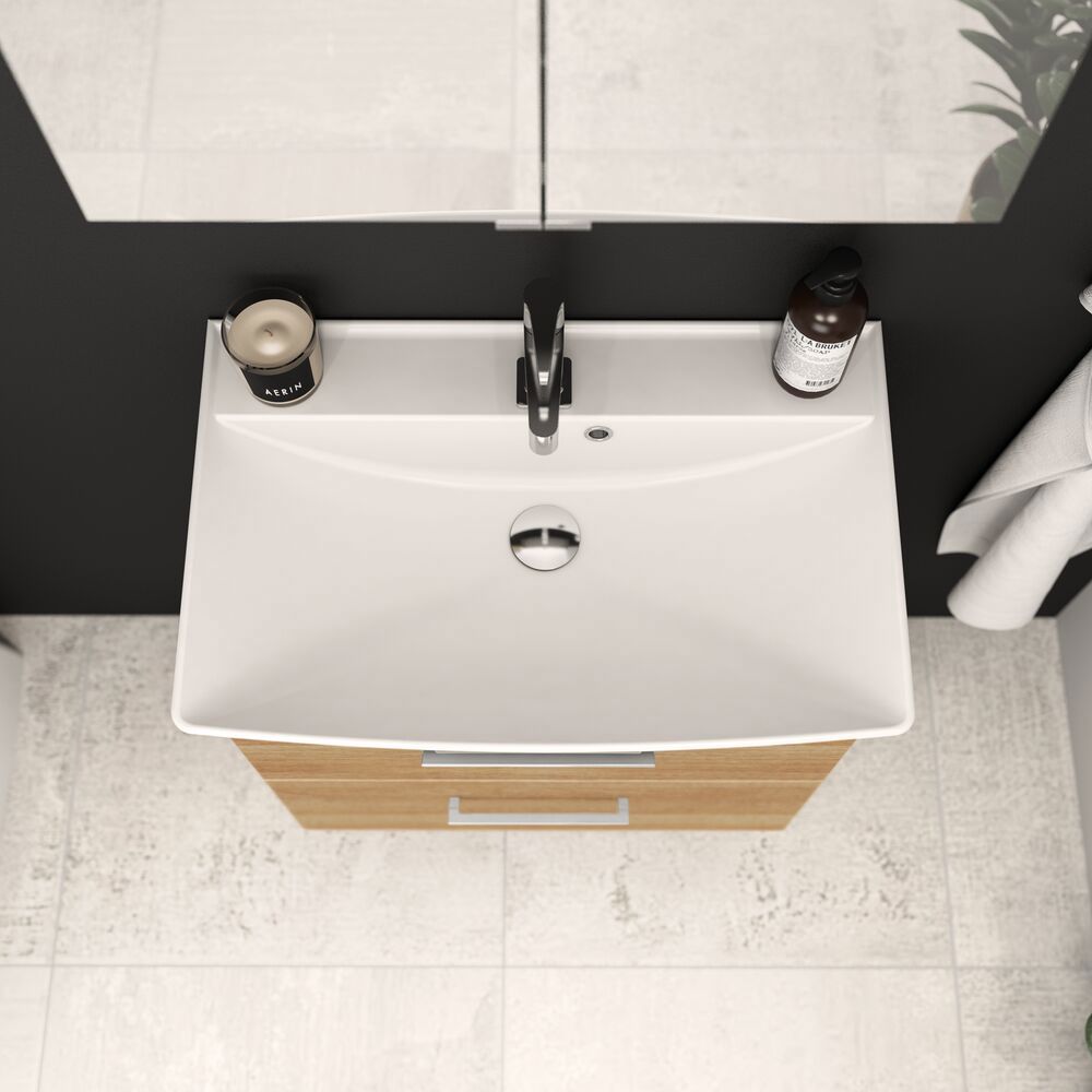 Take your morning to new heights with the Top mirror cabinet. This mirror cabinet has a lighting strip running the full cabinet width at the top of the cabinet, while inside you'll find plenty of storage space and an electrical socket with a switch. So you get much more than you might expect. Of course, the mirror cabinet is available with gables in beautiful colours, allowing you to create a uniform look in your bathroom.