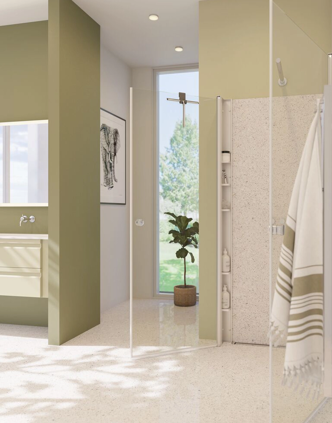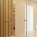 Dansani Tower is an innovative solution that provides exceptional storage space in the shower without compromising on aesthetics. This intelligent storage system combines seamlessly with Dansani's Match doors and panels to create a cohesive and stylish shower solution. Tower has 5 removable shelves that are perfect for organizing the products and care items you use in your shower. To accommodate Tower, simply choose a panel or door that is 10cm smaller than your installation. Dansani Tower is the ideal solution for those who want to optimise the space in their shower without compromising on style and functionality. With Tower, you get both practical storage space and an elegant shower experience that gives you a sense of well-being and order in your shower room.
