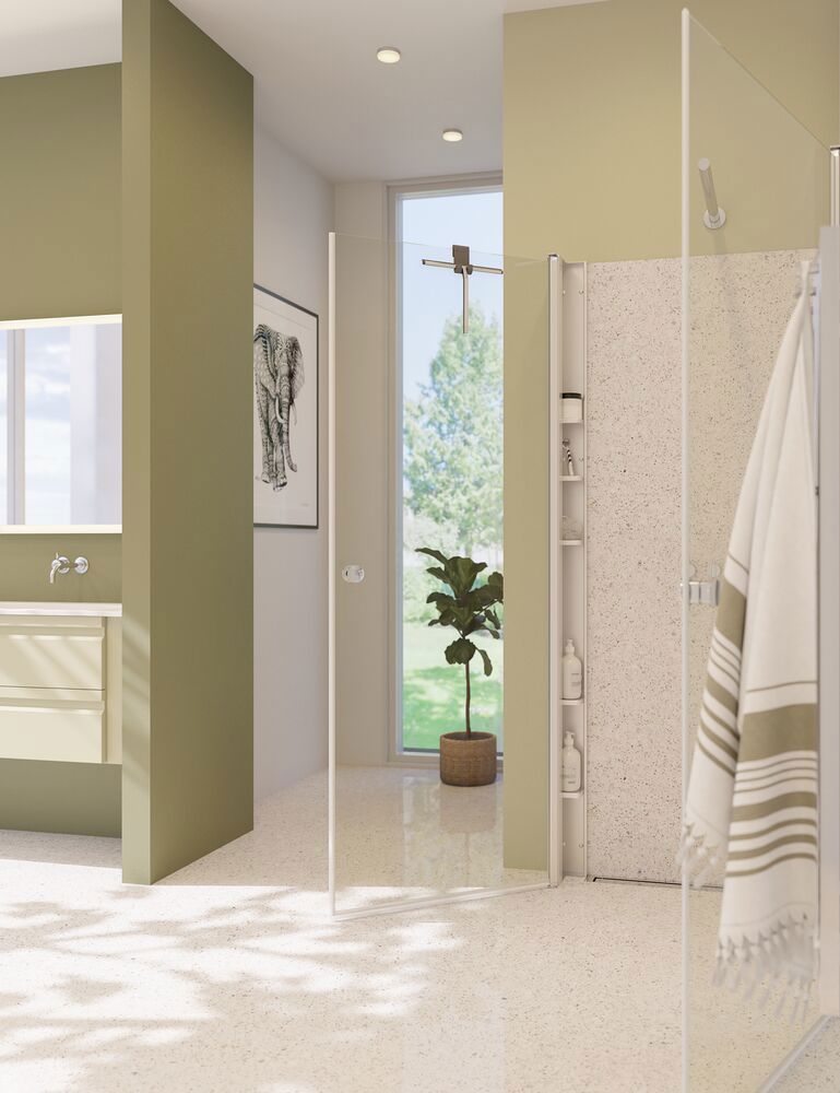 Dansani Tower is an innovative solution that provides exceptional storage space in the shower without compromising on aesthetics. This intelligent storage system combines seamlessly with Dansani's Match doors and panels to create a cohesive and stylish shower solution. Tower has 5 removable shelves that are perfect for organizing the products and care items you use in your shower. To accommodate Tower, simply choose a panel or door that is 10cm smaller than your installation. Dansani Tower is the ideal solution for those who want to optimise the space in their shower without compromising on style and functionality. With Tower, you get both practical storage space and an elegant shower experience that gives you a sense of well-being and order in your shower room.