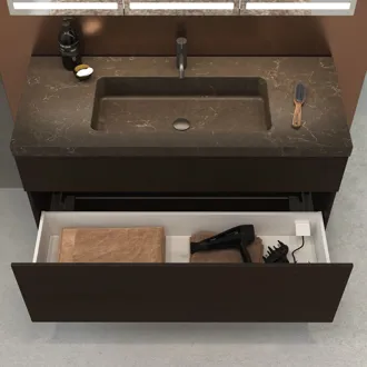 The Dansani Calidris Unique washbasin combines elegance with durability thanks to its production in the Silestone material. This washbasin offers not only exceptional aesthetics, but also reliable performance. Silestone's unique combination of beauty and strength ensures that your Calidris Unique washbasin will remain beautiful and functional for years. This sink is a perfect example of beauty meeting sustainability in bathroom design.