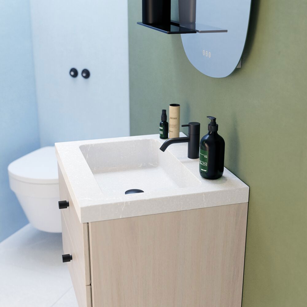 The Dansani Calidris Unique washbasin combines elegance with durability thanks to its production in the Silestone material. This washbasin offers not only exceptional aesthetics, but also reliable performance. Silestone's unique combination of beauty and strength ensures that your Calidris Unique washbasin will remain beautiful and functional for years. This sink is a perfect example of beauty meeting sustainability in bathroom design.