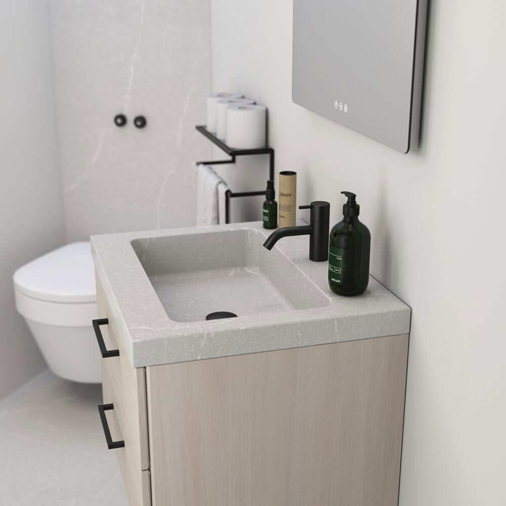 The Dansani Calidris Unique washbasin combines elegance with durability thanks to its production in the Silestone material. This washbasin offers not only exceptional aesthetics, but also reliable performance. Silestone's unique combination of beauty and strength ensures that your Calidris Unique washbasin will remain beautiful and functional for years. This sink is a perfect example of beauty meeting sustainability in bathroom design.