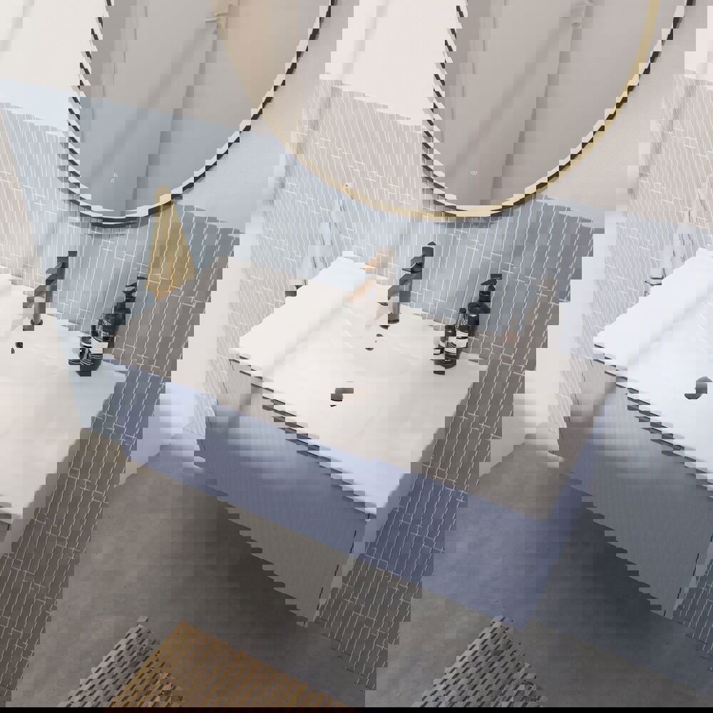 This vanity unit combines the simple functionality of 1 drawer with a stylish striped front to give your bathroom a unique and modern touch. Choose from white, sand or light blue to adapt the cabinet to your personal style. The spacious drawer gives you overview and storage space while the handle is mounted and ready to use.