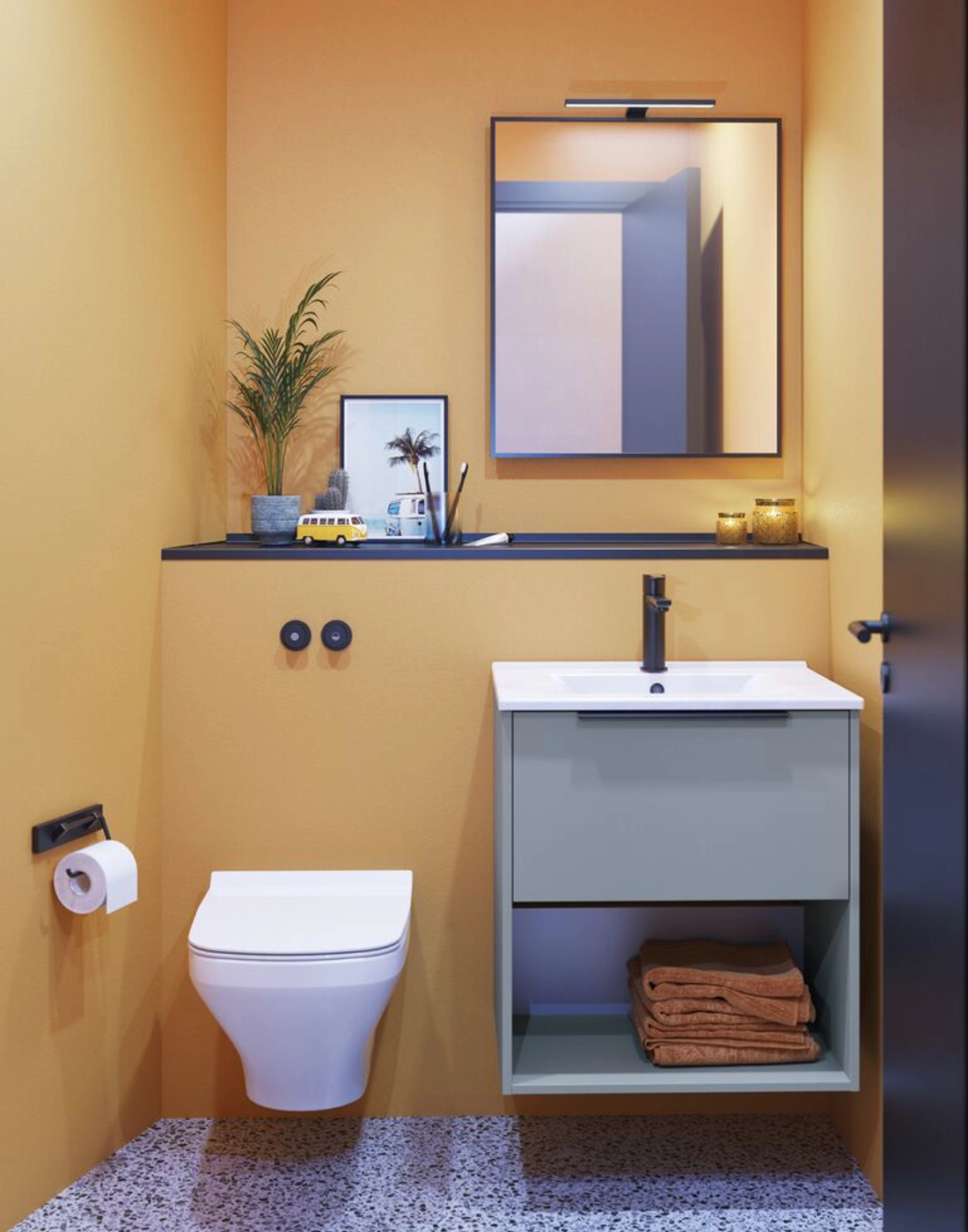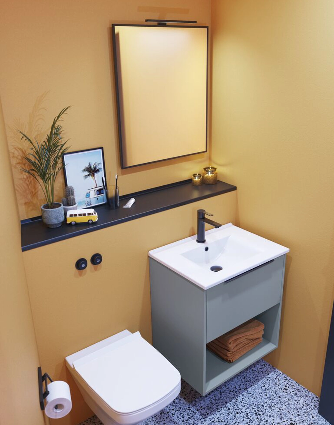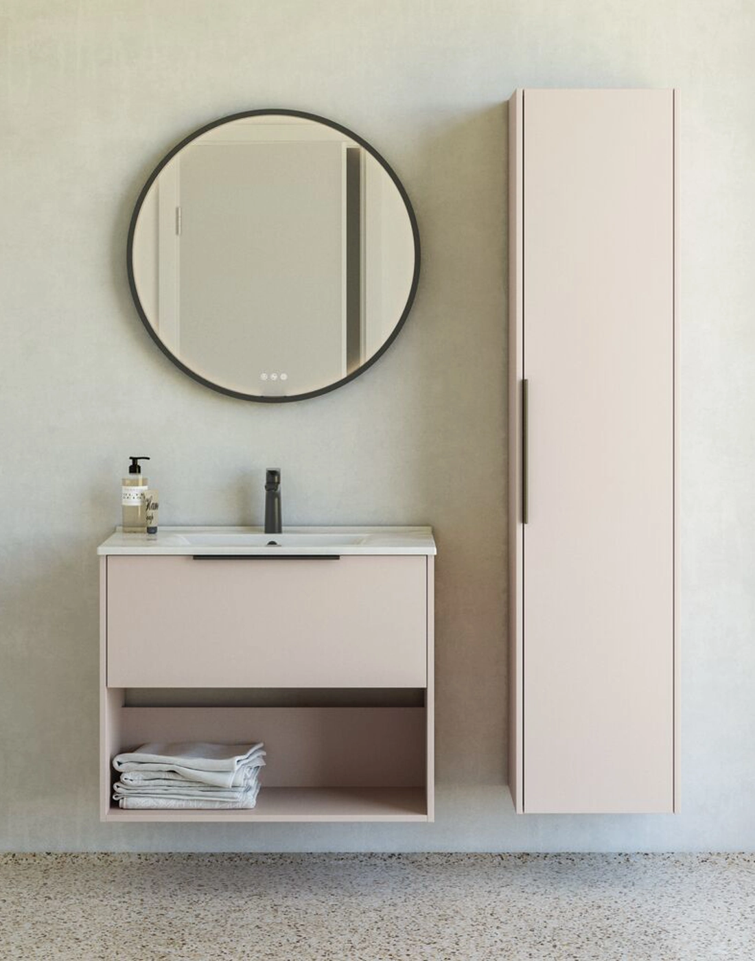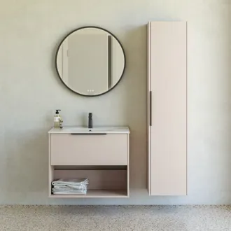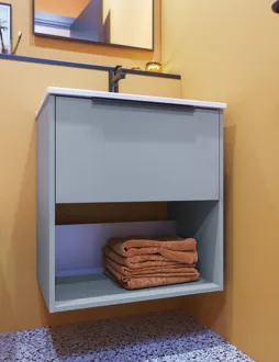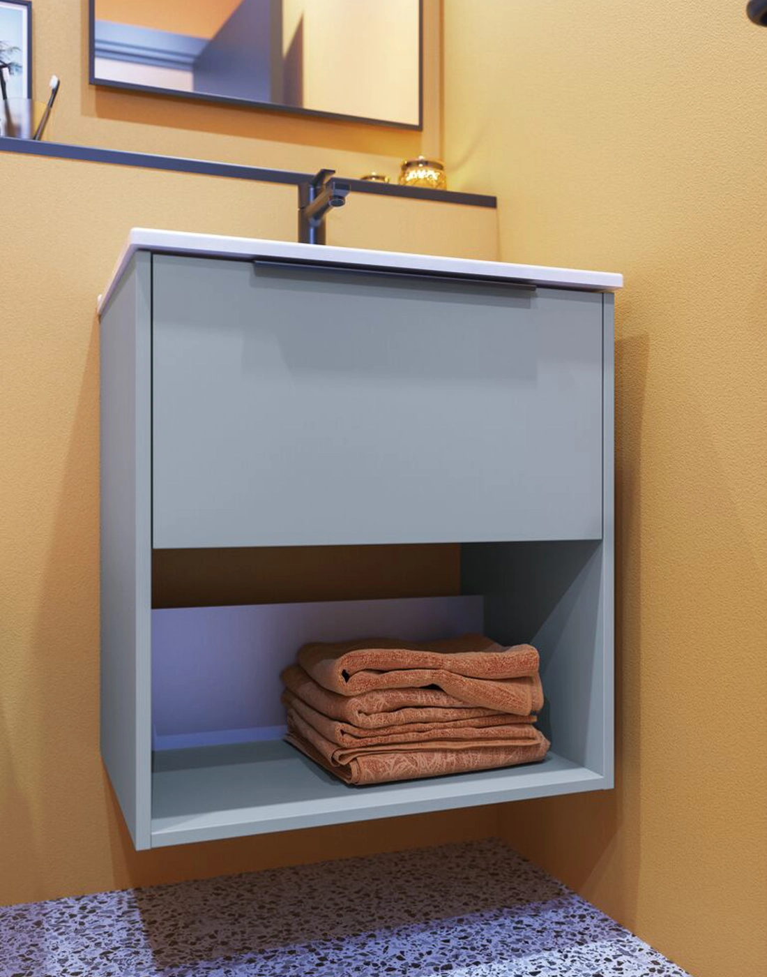 Here you get both storage space and the opportunity to display your favorite things. This vanity unit has a practical drawer and an open space that is perfect for displaying your nice towels or decorative items. Available in three elegant colors: white, sand and light blue. The drawer is spacious and the matching handle is attached so it's ready to use.
