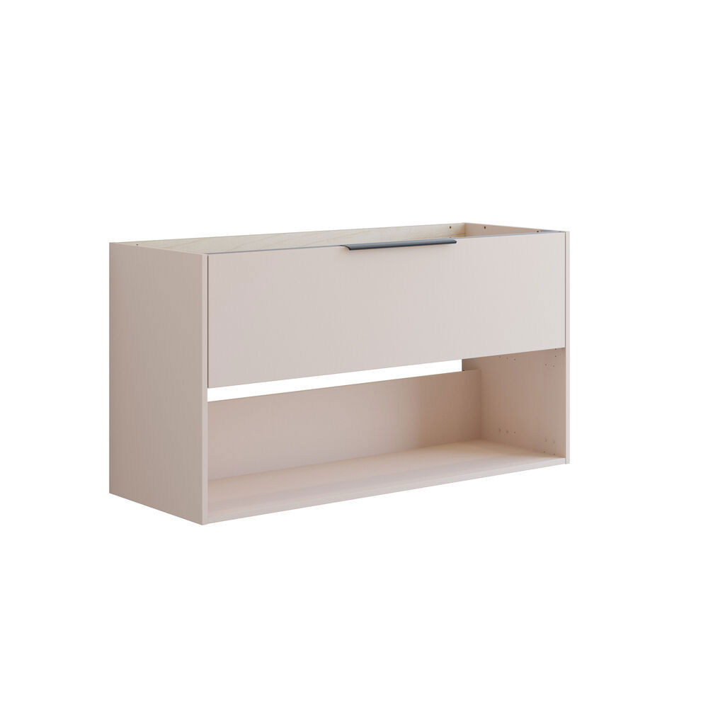 Here you get both storage space and the opportunity to display your favorite things. This vanity unit has a practical drawer and an open space that is perfect for displaying your nice towels or decorative items. Available in three elegant colors: white, sand and light blue. The drawer is spacious and the matching handle is attached so it's ready to use.