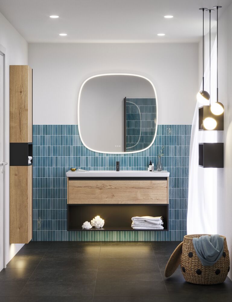 Transform your bathroom into a stylish oasis with the vanity unit featuring an integrated handle. This unit comes with a deep drawer that is 32 cm high, offering optimal storage space for your essential bathroom items. The handle is standardly black, providing a modern contrast to your bathroom. However, if you choose to have your vanity unit in a custom color, the handle will be tinted in the same shade, creating a harmonious connection. The minimalist design with the integrated handle gives a clean and modern look that perfectly suits any contemporary bathroom. It is not only functional but also an aesthetic addition that makes it easy to keep your space organized. NB: There is a start-up fee (BI2) for products with bespoke colour. It is an one-off surcharge per bespoke colour regardless number of products. Remember to add the little practical things to your bathroom furniture that you will enjoy on a daily basis. For example, lights in drawers and cabinets, built-in electrical sockets and dimmed sensor lights under the furniture to guide night-time bathroom visits. Options are ordered at the same time as your furniture.