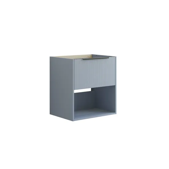 This vanity unit combines the best of both worlds: a practical drawer, an open space to display your favorite things and a striped front for a unique and elegant look. Choose from white, sand or light blue to find the color that best suits your bathroom. The handle is already mounted so it's ready to use.