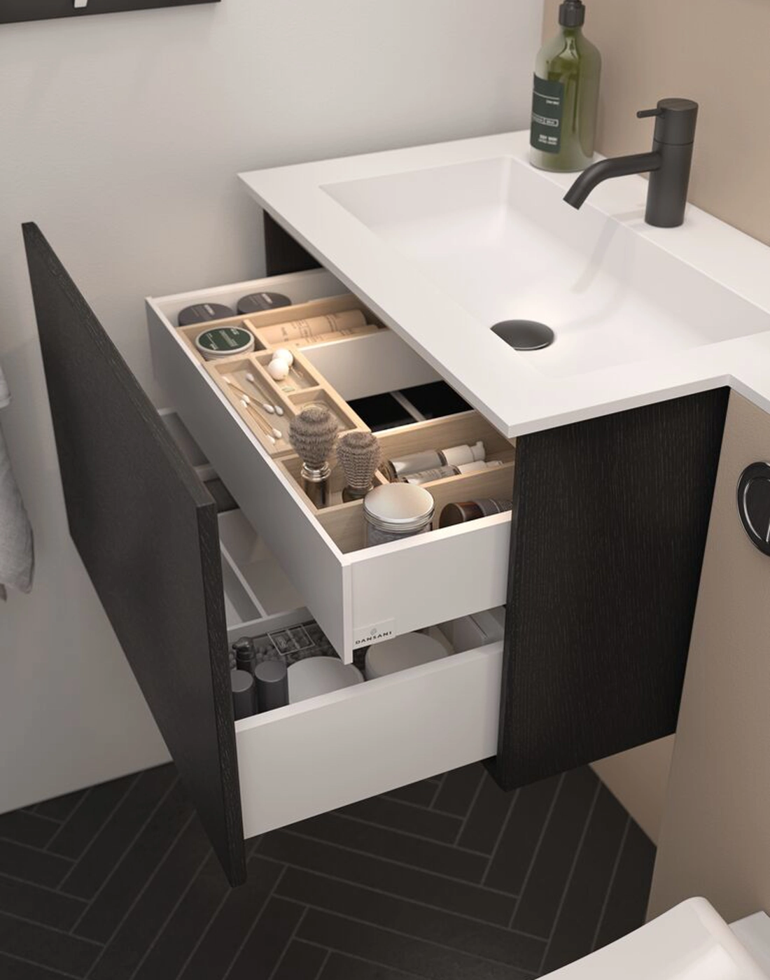 Enrich your bathroom with a beautiful combination of elegance and practical functionality with this Dansani Calidris 1-drawer vanity unit. Designed with a minimalist look and clean lines, this vanity unit adds a sophisticated look to your bathroom decor. With a 40cm projection vanity unit, there's room for both style and storage. The spacious drawer allows you to organise and store all your bathroom essentials in an elegant way. NB: There is a start-up fee (BI2) for products with oak and bespoke colour. It is an one-off surcharge per oak and bespoke colour regardless number of products. Remember to add the little practical things to your bathroom furniture that you will enjoy on a daily basis. For example, lights in drawers and cabinets, built-in electrical sockets and dimmed sensor lights under the furniture to guide night-time bathroom visits. Options are ordered at the same time as your furniture.