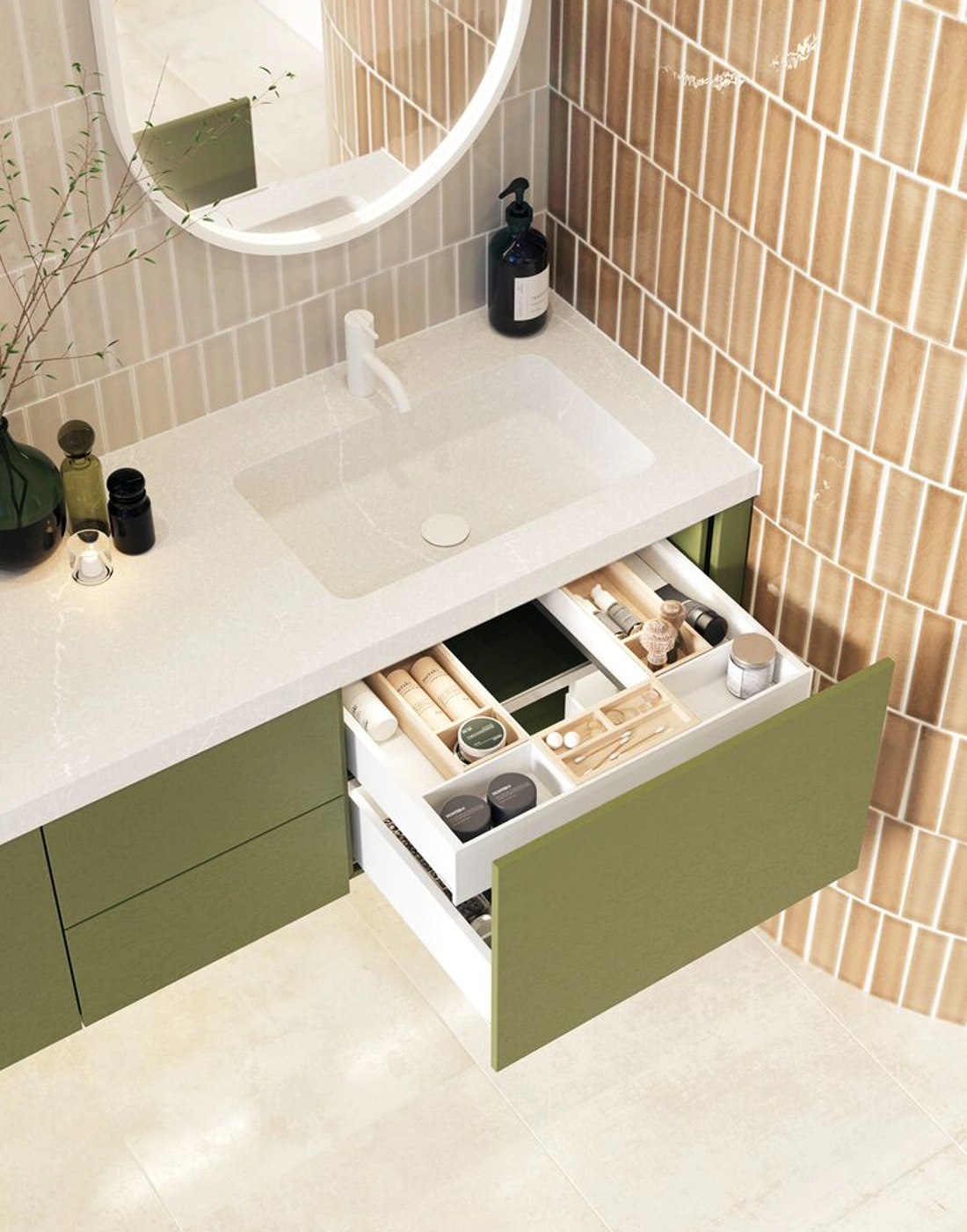 The Dansani Calidris 1-drawer vanity unit combines elegance and functionality in your bathroom. The minimalist design and simple lines of the Calidris vanity unit add a sophisticated look to your bathroom. The drawer provides ample space to store all the essentials in your bathroom. With a focus on both functionality and design, the Dansani Calidris 1-drawer vanity unit is the ideal choice for those who want a stylish and well-organised bathroom. NB: There is a start-up fee (BI2) for products with oak and bespoke colour. It is an one-off surcharge per oak and bespoke colour regardless number of products. Remember to add the little practical things to your bathroom furniture that you will enjoy on a daily basis. For example, lights in drawers and cabinets, built-in electrical sockets and dimmed sensor lights under the furniture to guide night-time bathroom visits. Options are ordered at the same time as your furniture.