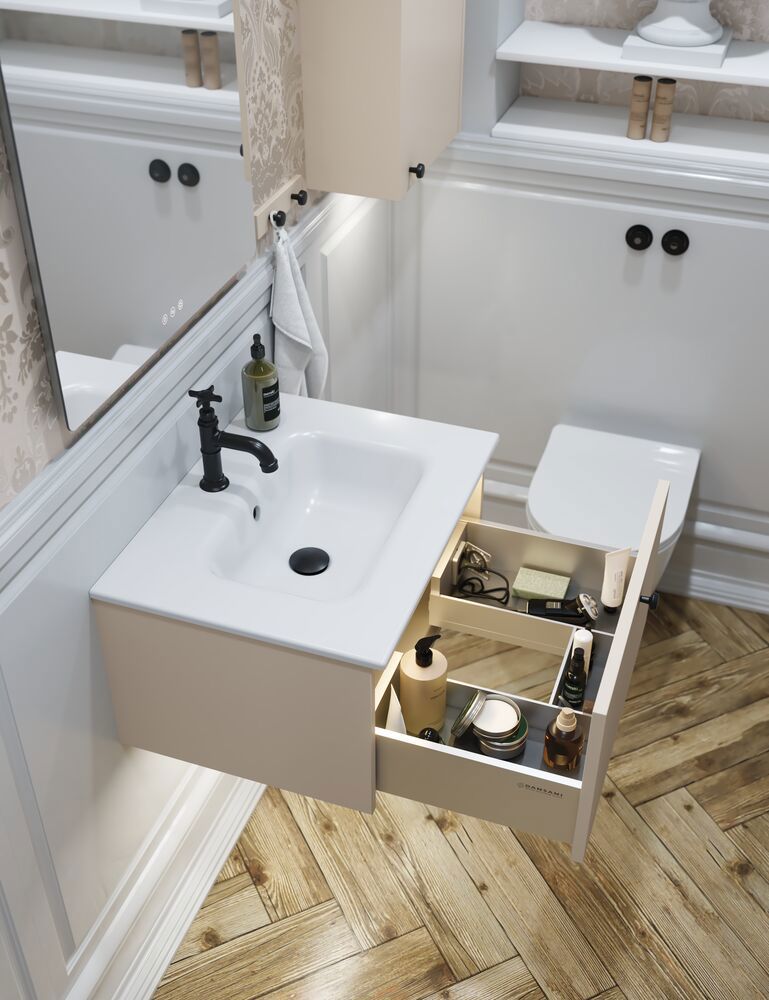 Create an inviting sanctuary in your bathroom with this stylish vanity unit with a smooth front. Featuring a deep drawer measuring 32 cm in height, this unit is designed to optimize space, no matter how small your bathroom may be. The smooth drawer glides effortlessly, giving you quick access to your daily essentials. The minimalist look and modern design make this vanity unit a perfect choice for those looking to create an elegant and tidy atmosphere. NB: There is a start-up fee (BI2) for products with bespoke colour. It is an one-off surcharge per bespoke colour regardless number of products. Remember to add the little practical things to your bathroom furniture that you will enjoy on a daily basis. For example, lights in drawers and cabinets, built-in electrical sockets and dimmed sensor lights under the furniture to guide night-time bathroom visits. Options are ordered at the same time as your furniture.