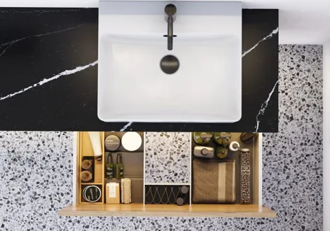 Upgrade your bathroom with style and functionality with a vanity unit. The smart, single-drawer design gives you the perfect storage solution for your bathroom products. Keep your bathroom tidy and organized with this elegant unit that fits in with any decor. The vanity unit is available in several different colors, so you can choose the one that best suits your style. NB: There is a start-up fee (BI2) for products with bespoke colour. It is an one-off surcharge per bespoke colour regardless number of products. Remember to add the little practical things to your bathroom furniture that you will enjoy on a daily basis. For example, lights in drawers and cabinets, built-in electrical sockets and dimmed sensor lights under the furniture to guide night-time bathroom visits. Options are ordered at the same time as your furniture.