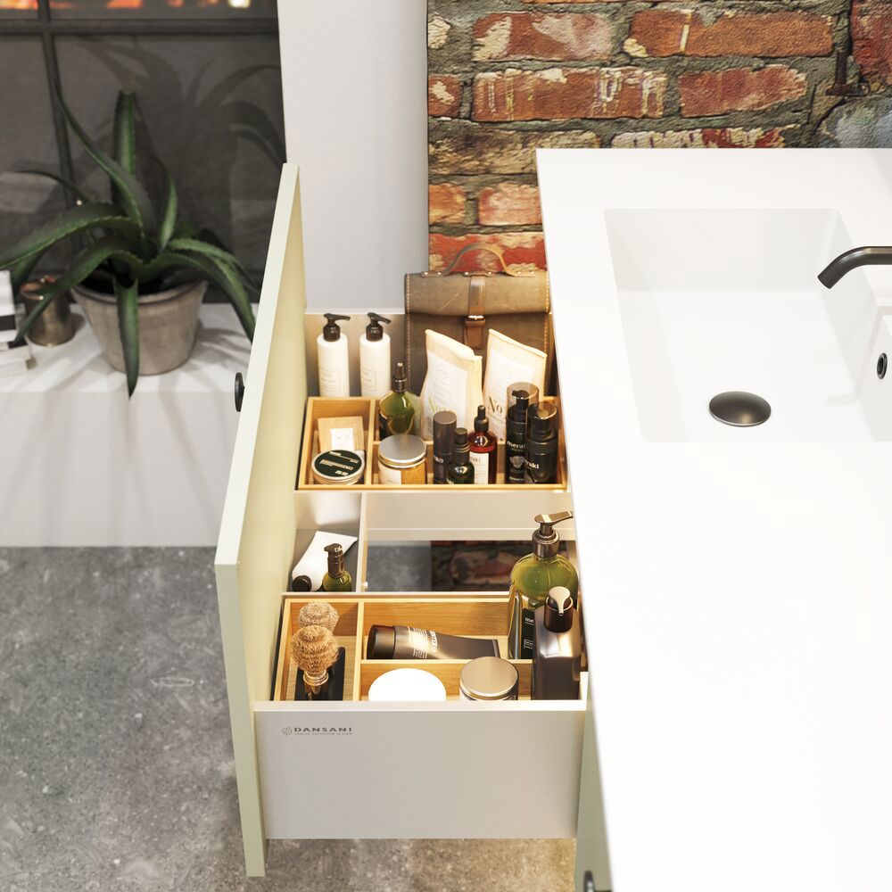 Upgrade your bathroom with style and functionality with a vanity unit. The smart, single-drawer design gives you the perfect storage solution for your bathroom products. Keep your bathroom tidy and organized with this elegant unit that fits in with any decor. The vanity unit is available in several different colors, so you can choose the one that best suits your style. NB: There is a start-up fee (BI2) for products with bespoke colour. It is an one-off surcharge per bespoke colour regardless number of products. Remember to add the little practical things to your bathroom furniture that you will enjoy on a daily basis. For example, lights in drawers and cabinets, built-in electrical sockets and dimmed sensor lights under the furniture to guide night-time bathroom visits. Options are ordered at the same time as your furniture.