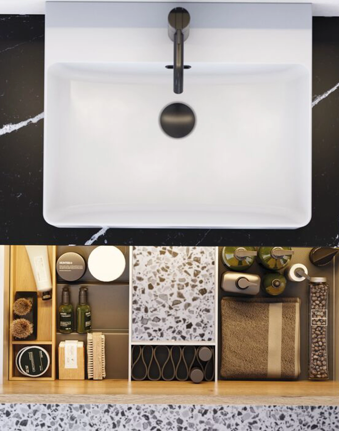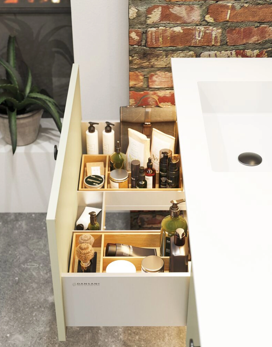 Upgrade your bathroom with style and functionality with a vanity unit. The smart, single-drawer design gives you the perfect storage solution for your bathroom products. Keep your bathroom tidy and organized with this elegant unit that fits in with any decor. The vanity unit is available in several different colors, so you can choose the one that best suits your style. NB: There is a start-up fee (BI2) for products with bespoke colour. It is an one-off surcharge per bespoke colour regardless number of products. Remember to add the little practical things to your bathroom furniture that you will enjoy on a daily basis. For example, lights in drawers and cabinets, built-in electrical sockets and dimmed sensor lights under the furniture to guide night-time bathroom visits. Options are ordered at the same time as your furniture.