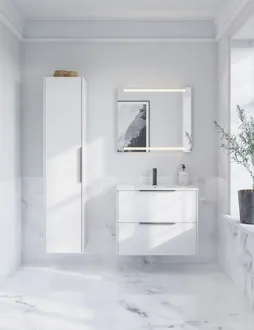 This vanity unit combines functionality and style with its 2 spacious drawers and an elegant striped front. Available in white, sand or light blue, this cabinet will give your bathroom a modern and unique look. The drawers offer plenty of storage space and the handles are fitted and ready to use.