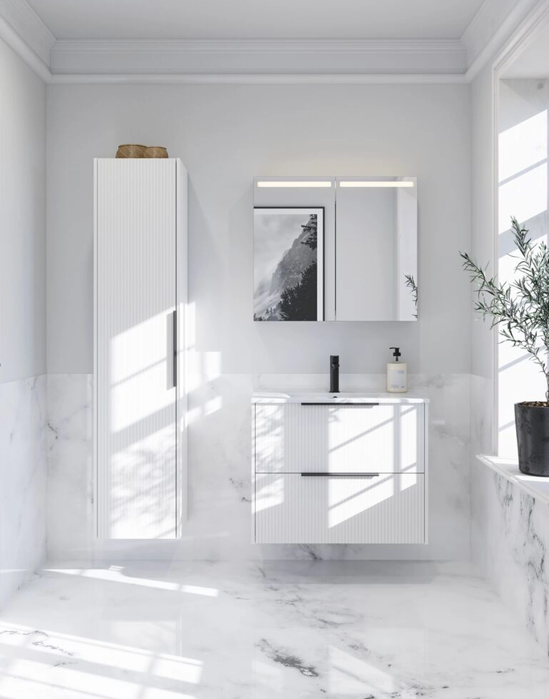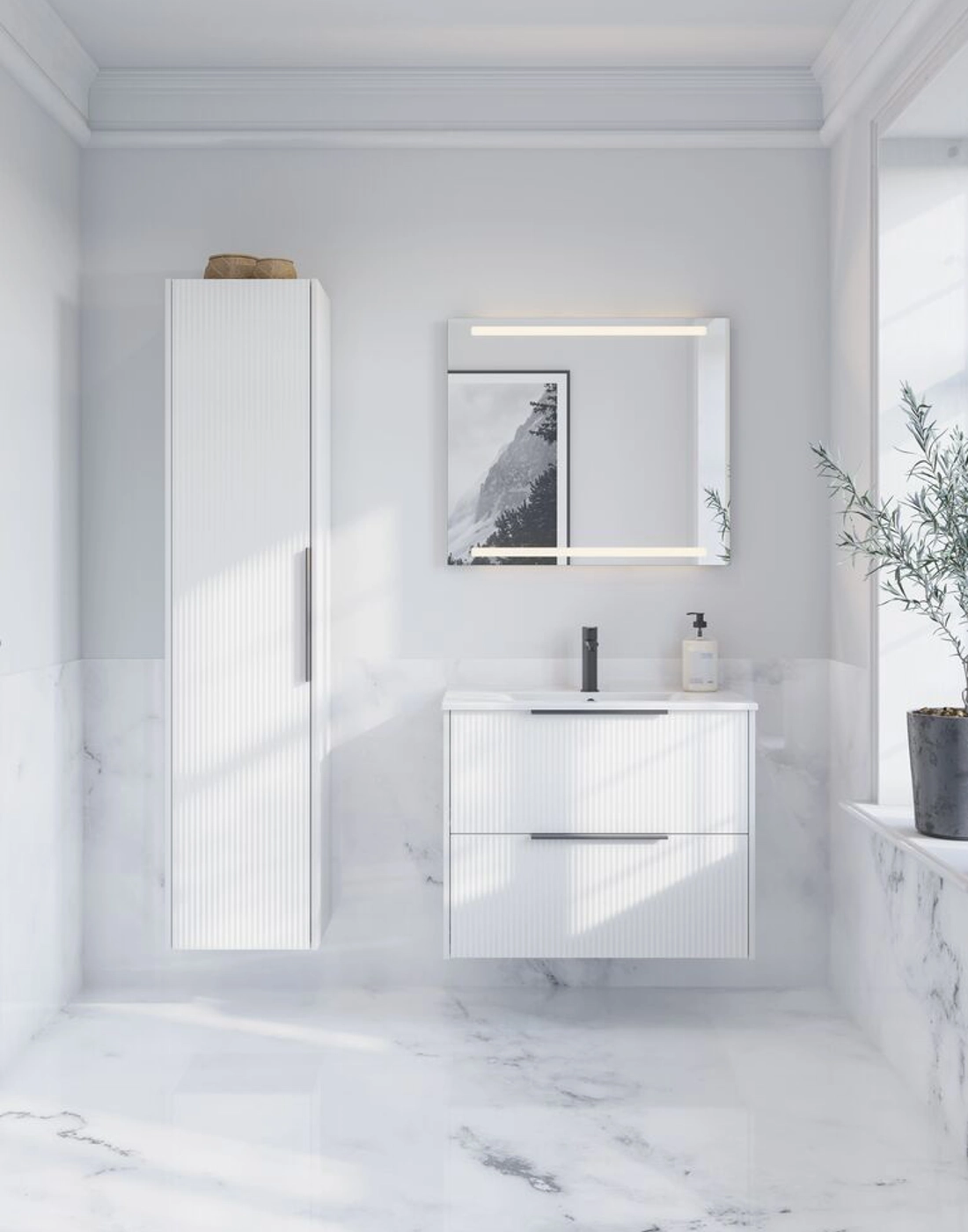 Vanity unit with 2 drawers and fluted front