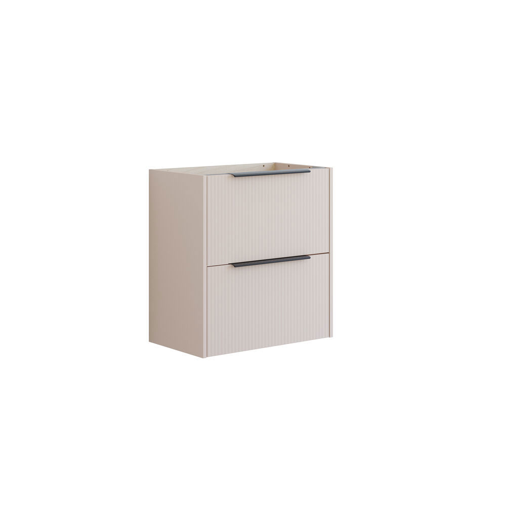 A versatile vanity unit in a modern design with two fully extendable drawers that make it easy to stay organized. Soft-close and quality glides ensure a quiet and comfortable user experience every time. The striped white matte decor gives the cabinet a light, textured look with Nordic character, while the included black handle adds a sharp visual detail. A perfect choice for the style-conscious bathroom.