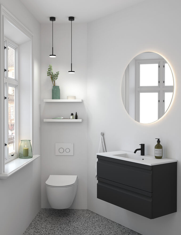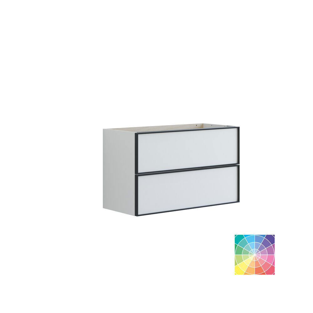 Upgrade your bathroom with the vanity unit featuring 2 spacious drawers. With a depth of just 35 cm, it provides a space-saving solution without compromising on storage options. The black aluminum frame around the drawers adds an exclusive detail that brings edge and style to the room. Whatever colour you choose, this vanity unit brings elegance and practical storage to your bathroom decor. NB: There is a start-up fee (BI2) for products with bespoke colour. It is an one-off surcharge per bespoke colour regardless number of products. Remember to add the little practical things to your bathroom furniture that you will enjoy on a daily basis. For example, lights in drawers and cabinets, built-in electrical sockets and dimmed sensor lights under the furniture to guide night-time bathroom visits. Options are ordered at the same time as your furniture.