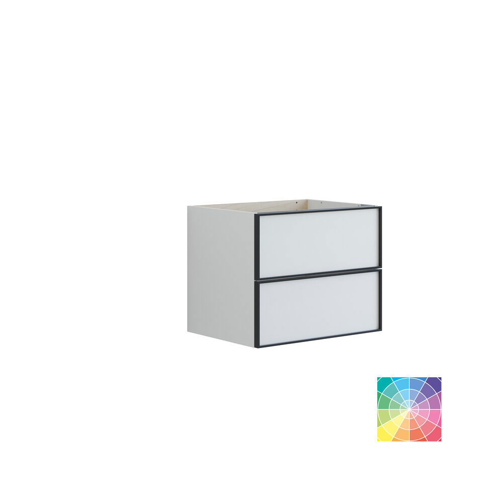 Upgrade your bathroom with the vanity unit featuring 2 drawers. This stylish unit is 48 cm high and 44 cm deep, ideal for organizing your bathroom items. The elegant black frame around the drawers adds a modern and sleek look that fits any decor. Choose from various colors to find the one that best suits your style. The unit offers smart storage, allowing you to keep everything organized easily. This vanity unit with 2 drawers combines functionality with aesthetics, making it a beautiful addition to your bathroom. Make your space more organized and inviting with this fantastic vanity unit. NB: There is a start-up fee (BI2) for products with bespoke colour. It is an one-off surcharge per bespoke colour regardless number of products. Remember to add the little practical things to your bathroom furniture that you will enjoy on a daily basis. For example, lights in drawers and cabinets, built-in electrical sockets and dimmed sensor lights under the furniture to guide night-time bathroom visits. Options are ordered at the same time as your furniture.