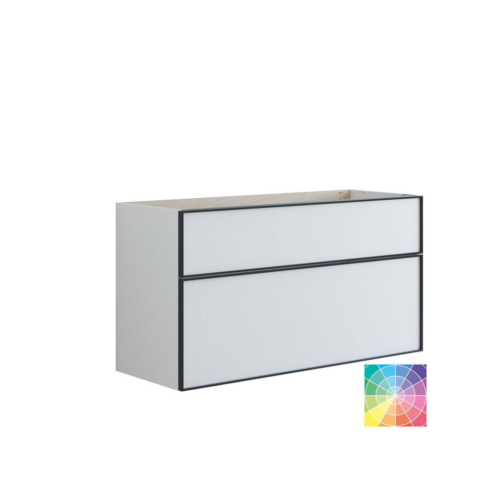 Upgrade your bathroom with the vanity unit featuring 2 drawers. This stylish unit is 64 cm tall and 44 cm deep, making it ideal for organizing your bathroom products. The elegant black frame around the drawers adds a modern and sophisticated touch that fits any decor. Choose from various colors to find the best match for your style. This vanity unit makes it easy to organize your bathroom essentials and keep everything tidy. The 2-drawer vanity unit combines practical functionality with beautiful design, making it a perfect addition to your bathroom. Make your space more organized and stylish with this fantastic unit. NB: There is a start-up fee (BI2) for products with bespoke colour. It is an one-off surcharge per bespoke colour regardless number of products. Remember to add the little practical things to your bathroom furniture that you will enjoy on a daily basis. For example, lights in drawers and cabinets, built-in electrical sockets and dimmed sensor lights under the furniture to guide night-time bathroom visits. Options are ordered at the same time as your furniture.