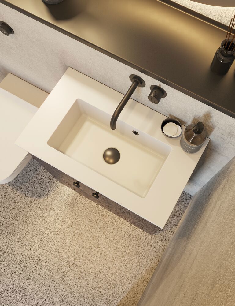 Transform your bathroom into a stylish oasis with the vanity unit with striped front. The elegant vertical stripes give the cabinet a vibrant and modern look that stands out and adds character to the room. With two spacious drawers, each 32 cm high, you'll have plenty of space to organize your bathroom essentials, while the drawers slide easily and give you a full overview. Choose from white, sand or light blue - colors that each create their own mood. The white front gives a timeless and classic look, sand adds warmth and naturalness, while the light blue brings freshness and lightness to the interior. The stylish design combines functionality with aesthetics, making this vanity unit an obvious choice if you want to combine practical storage with a personal and elegant look. Remember to add the little practical things to your bathroom furniture that you will enjoy on a daily basis. For example, lights in drawers and cabinets, built-in electrical sockets and dimmed sensor lights under the furniture to guide night-time bathroom visits. Options are ordered at the same time as your furniture.