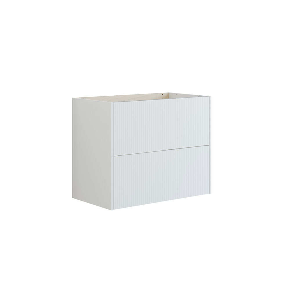 Transform your bathroom into a stylish oasis with the vanity unit with striped front. The elegant vertical stripes give the cabinet a vibrant and modern look that stands out and adds character to the room. With two spacious drawers, each 32 cm high, you'll have plenty of space to organize your bathroom essentials, while the drawers slide easily and give you a full overview. Choose from white, sand or light blue - colors that each create their own mood. The white front gives a timeless and classic look, sand adds warmth and naturalness, while the light blue brings freshness and lightness to the interior. The stylish design combines functionality with aesthetics, making this vanity unit an obvious choice if you want to combine practical storage with a personal and elegant look. Remember to add the little practical things to your bathroom furniture that you will enjoy on a daily basis. For example, lights in drawers and cabinets, built-in electrical sockets and dimmed sensor lights under the furniture to guide night-time bathroom visits. Options are ordered at the same time as your furniture.