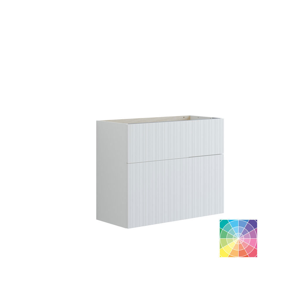 Discover the vanity unit with drawers – a smart solution for your bathroom. With its depth of 35 cm, it fits perfectly into smaller spaces. The high bottom drawer provides extra space for larger bathroom items, making it easy to keep everything in order. The fluted front gives the cabinet a unique and elegant look, allowing you to organize your belongings in a functional and stylish way. NB: There is a start-up fee (BI2) for products with bespoke colour. It is an one-off surcharge per bespoke colour regardless number of products. Remember to add the little practical things to your bathroom furniture that you will enjoy on a daily basis. For example, lights in drawers and cabinets, built-in electrical sockets and dimmed sensor lights under the furniture to guide night-time bathroom visits. Options are ordered at the same time as your furniture.