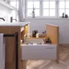 Renew your bathroom with the vanity unit featuring 2 drawers. This stylish unit has a height of 48 cm and a depth of 44 cm, perfect for keeping your bathroom items organized. The fluted front gives the unit a unique and modern appearance, adding character to your space. Choose from various colors to find the perfect match for your style. The unit provides practical storage, allowing you to easily organize your belongings. This vanity unit with 2 drawers offers both functionality and beauty, making it an excellent addition to your bathroom. Make your space more organized and stylish with this fantastic vanity unit. NB: There is a start-up fee (BI2) for products with bespoke colour. It is an one-off surcharge per bespoke colour regardless number of products. Remember to add the little practical things to your bathroom furniture that you will enjoy on a daily basis. For example, lights in drawers and cabinets, built-in electrical sockets and dimmed sensor lights under the furniture to guide night-time bathroom visits. Options are ordered at the same time as your furniture.