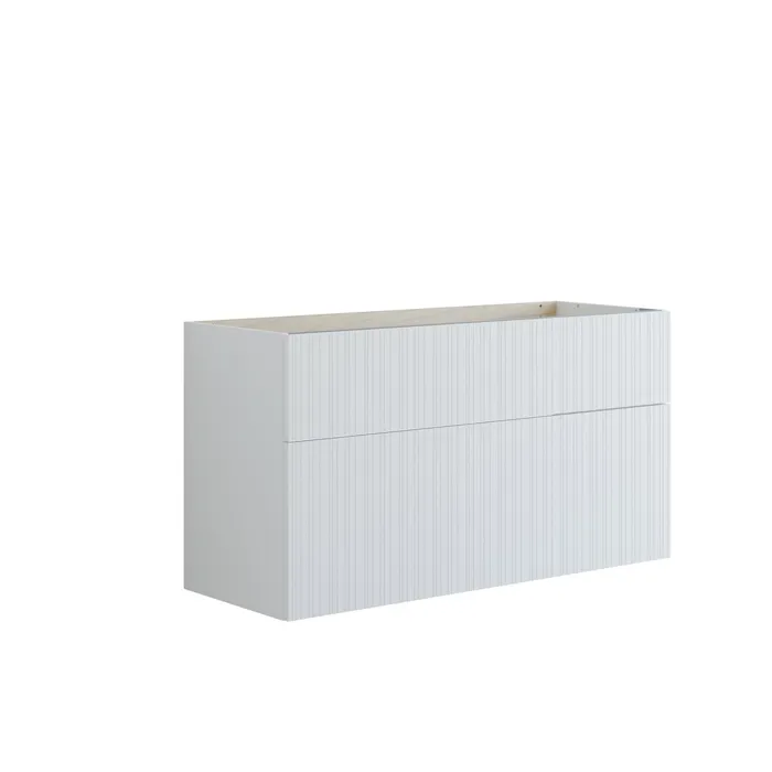 Refresh your bathroom with the vanity unit featuring 2 drawers. This stylish unit stands 64 cm tall and has a depth of 44 cm, making it perfect for keeping your bathroom essentials organized. The fluted front gives the unit a unique and modern appearance that adds character to your space. Choose from various colors to find the perfect match for your style. With this vanity unit, you can easily organize your items and keep everything tidy. The 2-drawer vanity unit offers both practical functionality and beautiful design, making it an excellent addition to your bathroom. Make your space more organized and elegant with this fantastic unit. NB: There is a start-up fee (BI2) for products with bespoke colour. It is an one-off surcharge per bespoke colour regardless number of products. Remember to add the little practical things to your bathroom furniture that you will enjoy on a daily basis. For example, lights in drawers and cabinets, built-in electrical sockets and dimmed sensor lights under the furniture to guide night-time bathroom visits. Options are ordered at the same time as your furniture.
