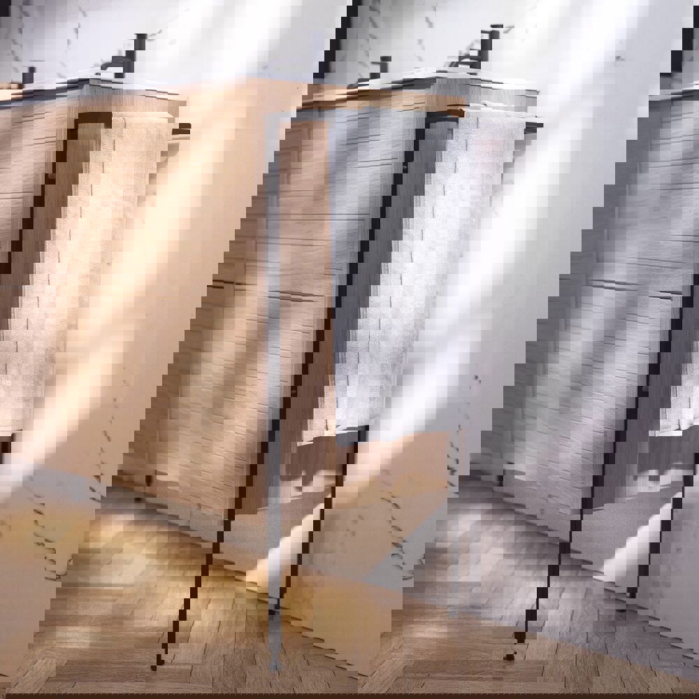 Create a unique style in your bathroom with the vanity unit with a grooved front. The two drawers, each 32 cm high, provide optimal storage to keep your bathroom items neatly organized. The grooved front adds a distinctive, modern look that stands out and brings personality to your space. This unit combines functionality with aesthetics, making it the ideal choice for those who want their bathroom to be both practical and stylish. Remember to add the little practical things to your bathroom furniture that you will enjoy on a daily basis. For example, lights in drawers and cabinets, built-in electrical sockets and dimmed sensor lights under the furniture to guide night-time bathroom visits. Options are ordered at the same time as your furniture.