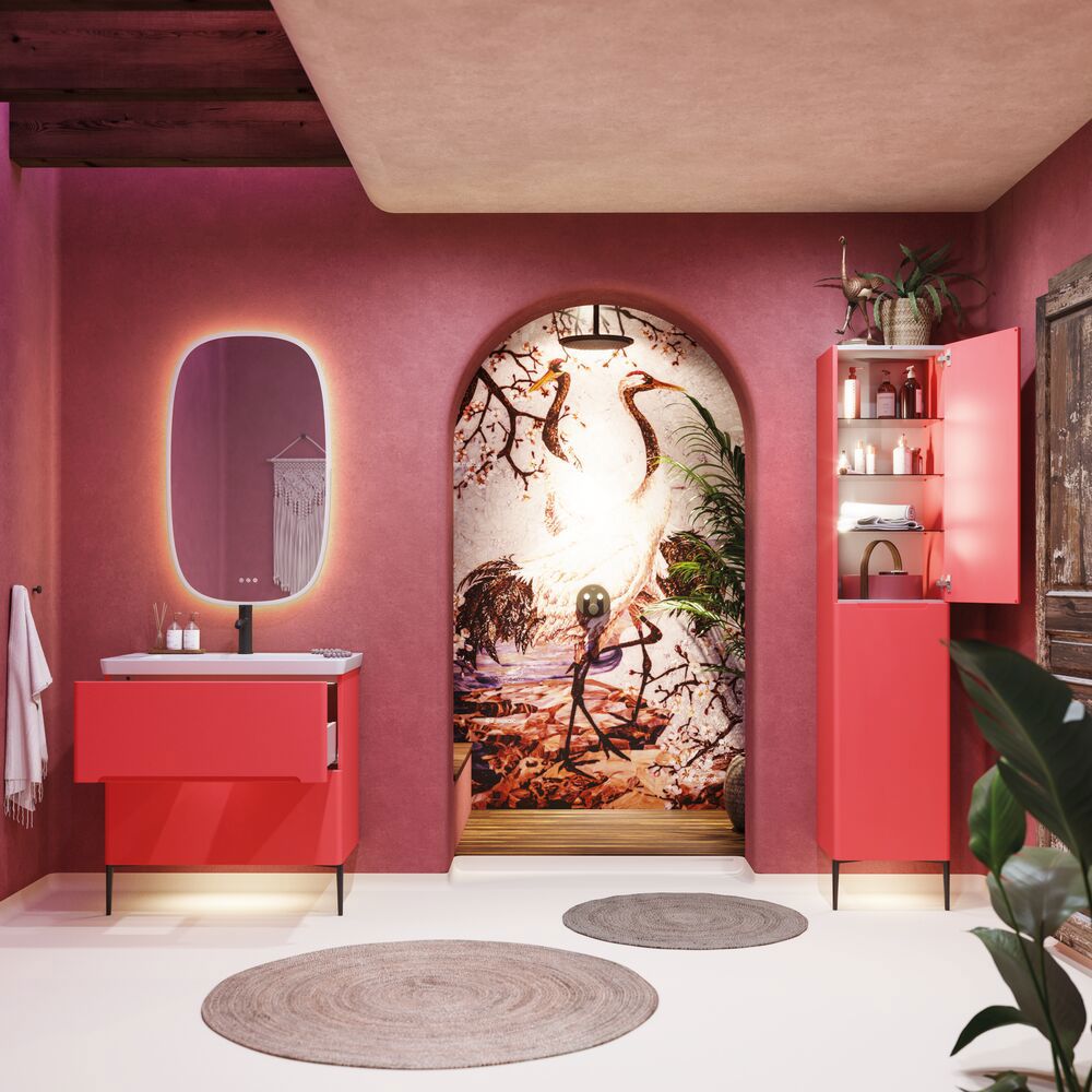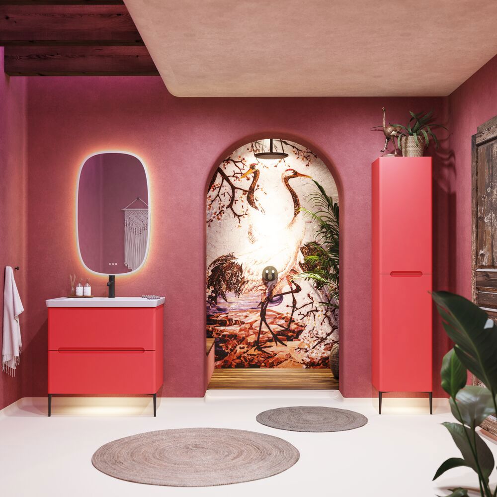 Enhance your bathroom with an elegant vanity unit that combines soft, rounded shapes with a streamlined appearance—perfect for a feminine vintage look. The modern front retains the charm and simplicity of classic dressers, creating a timeless atmosphere with a touch of elegance. The integrated handles in the grooved front emphasize the minimalist design, and you can choose between a clean white color or a unique shade that perfectly suits your personal style. As an extra detail, the unit is available with decorative black legs, giving the bathroom a light and airy feel. NB: There is a start-up fee (BI2) for products with bespoke colour. It is an one-off surcharge per bespoke colour regardless number of products. Remember to add the little practical things to your bathroom furniture that you will enjoy on a daily basis. For example, lights in drawers and cabinets, built-in electrical sockets and dimmed sensor lights under the furniture to guide night-time bathroom visits. Options are ordered at the same time as your furniture.