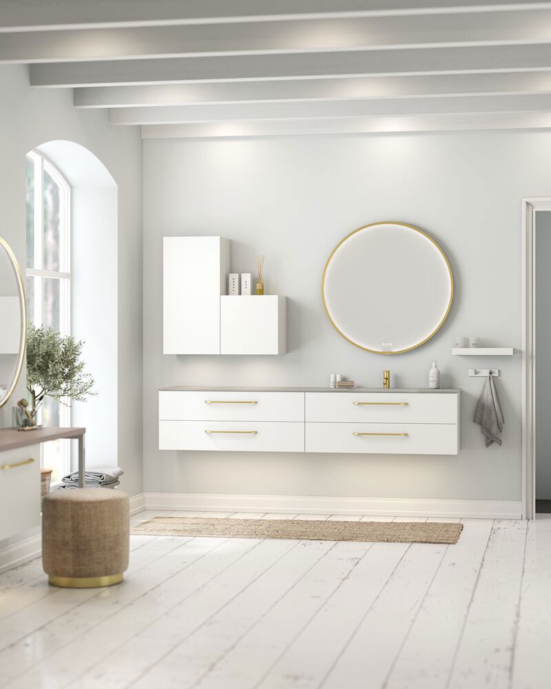 If you choose a Dansani Calidris 2-drawer vanity unit, you get minimalist design and clean lines in your bathroom. With a projection of 40cm, the vanity unit fits into smaller bathrooms. Not only will you have room for style, but also plenty of storage options. The two spacious drawers can easily store all the items you use on a daily basis in the bathroom. This is a vanity unit where functionality and design come together. This cabinet is the ideal solution if you're looking for both elegance and organisation in your bathroom. NB: There is a start-up fee (BI2) for products with oak and bespoke colour. It is an one-off surcharge per oak and bespoke colour regardless number of products. Remember to add the little practical things to your bathroom furniture that you will enjoy on a daily basis. For example, lights in drawers and cabinets, built-in electrical sockets and dimmed sensor lights under the furniture to guide night-time bathroom visits. Options are ordered at the same time as your furniture.