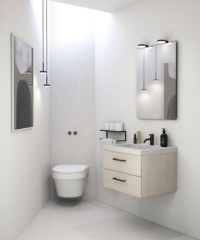 The Dansani Calidris 2-drawer vanity unit is a beautiful fusion of style and functionality for your bathroom. The minimalist design and clean lines of the Calidris vanity unit add a sophisticated look to your bathroom. The two spacious drawers not only provide practical storage, but also allow you to keep your bathroom tidy and organised. With a focus on both functionality and design, the Dansani Calidris 2-drawer vanity unit is the ideal choice for those who want an elegant and well-organised solution for the bathroom. NB: There is a start-up fee (BI2) for products with oak and bespoke colour. It is an one-off surcharge per oak and bespoke colour regardless number of products. Remember to add the little practical things to your bathroom furniture that you will enjoy on a daily basis. For example, lights in drawers and cabinets, built-in electrical sockets and dimmed sensor lights under the furniture to guide night-time bathroom visits. Options are ordered at the same time as your furniture.
