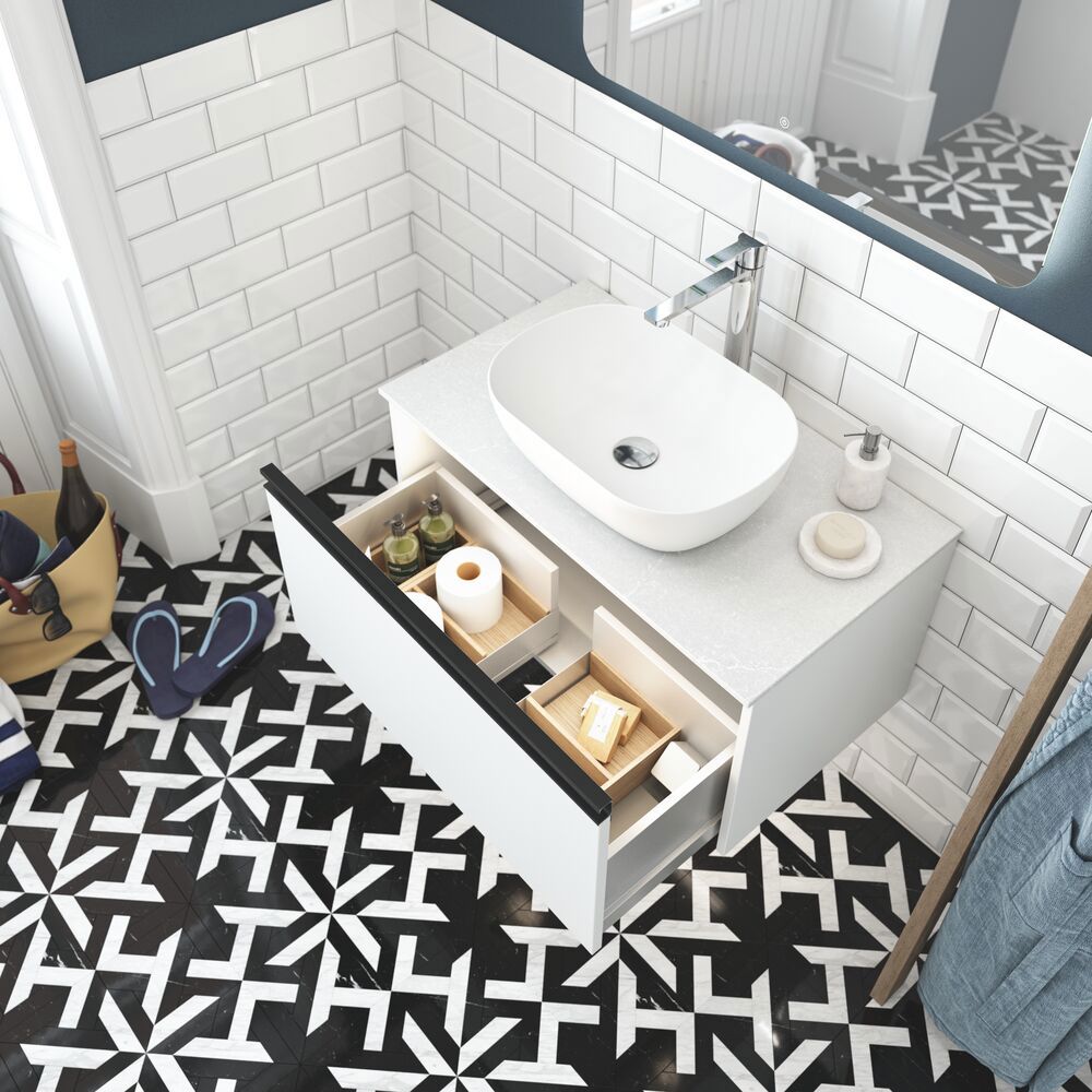 The Dansani Calidris 2-drawer vanity unit is a beautiful fusion of style and functionality for your bathroom. The minimalist design and clean lines of the Calidris vanity unit add a sophisticated look to your bathroom. The two spacious drawers not only provide practical storage, but also allow you to keep your bathroom tidy and organised. With a focus on both functionality and design, the Dansani Calidris 2-drawer vanity unit is the ideal choice for those who want an elegant and well-organised solution for the bathroom. NB: There is a start-up fee (BI2) for products with oak and bespoke colour. It is an one-off surcharge per oak and bespoke colour regardless number of products. Remember to add the little practical things to your bathroom furniture that you will enjoy on a daily basis. For example, lights in drawers and cabinets, built-in electrical sockets and dimmed sensor lights under the furniture to guide night-time bathroom visits. Options are ordered at the same time as your furniture.