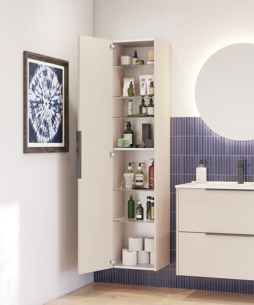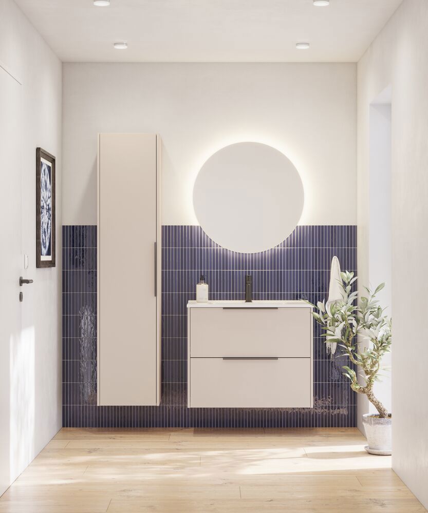 Double up on storage space with this vanity unit that has 2 spacious drawers. Available in white, sand or light blue, the cabinet fits perfectly into any Nordic-inspired bathroom. The two drawers give you ample space for both small and large toiletries, and the handles are fitted so the cabinet is ready to use right away.