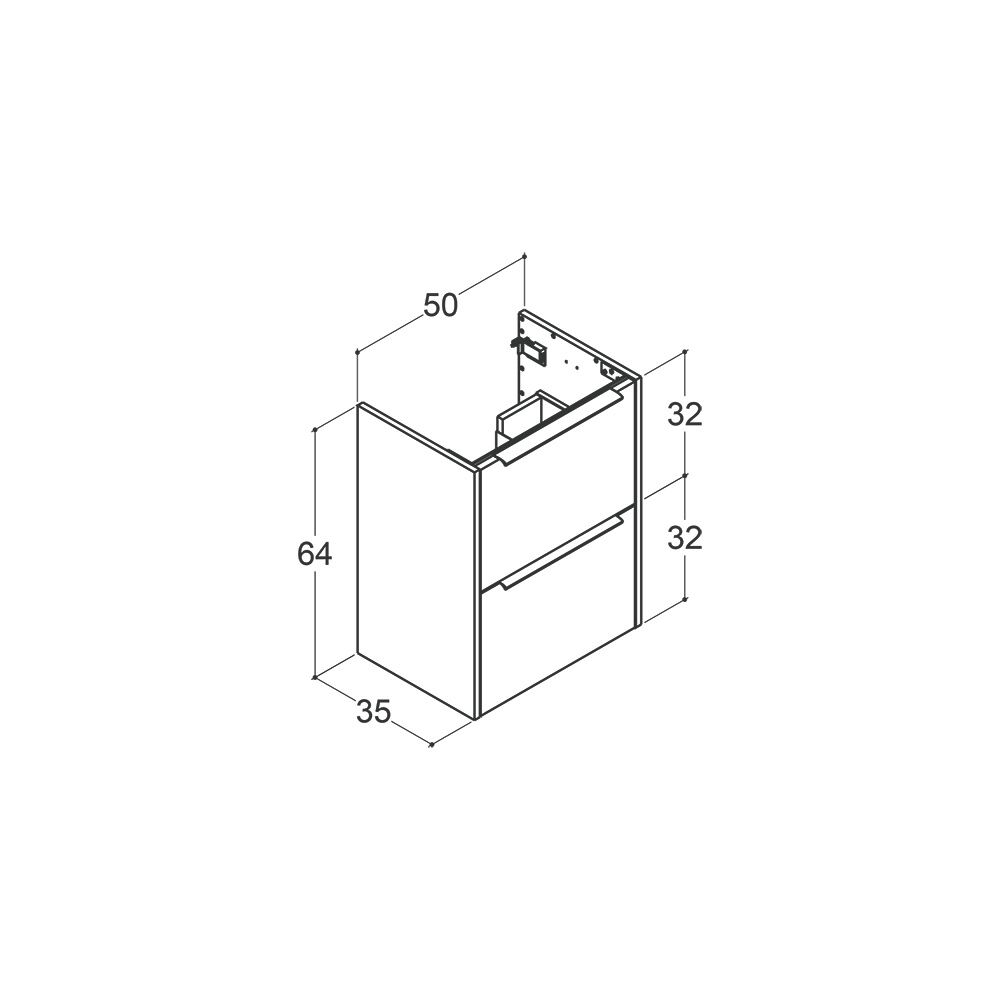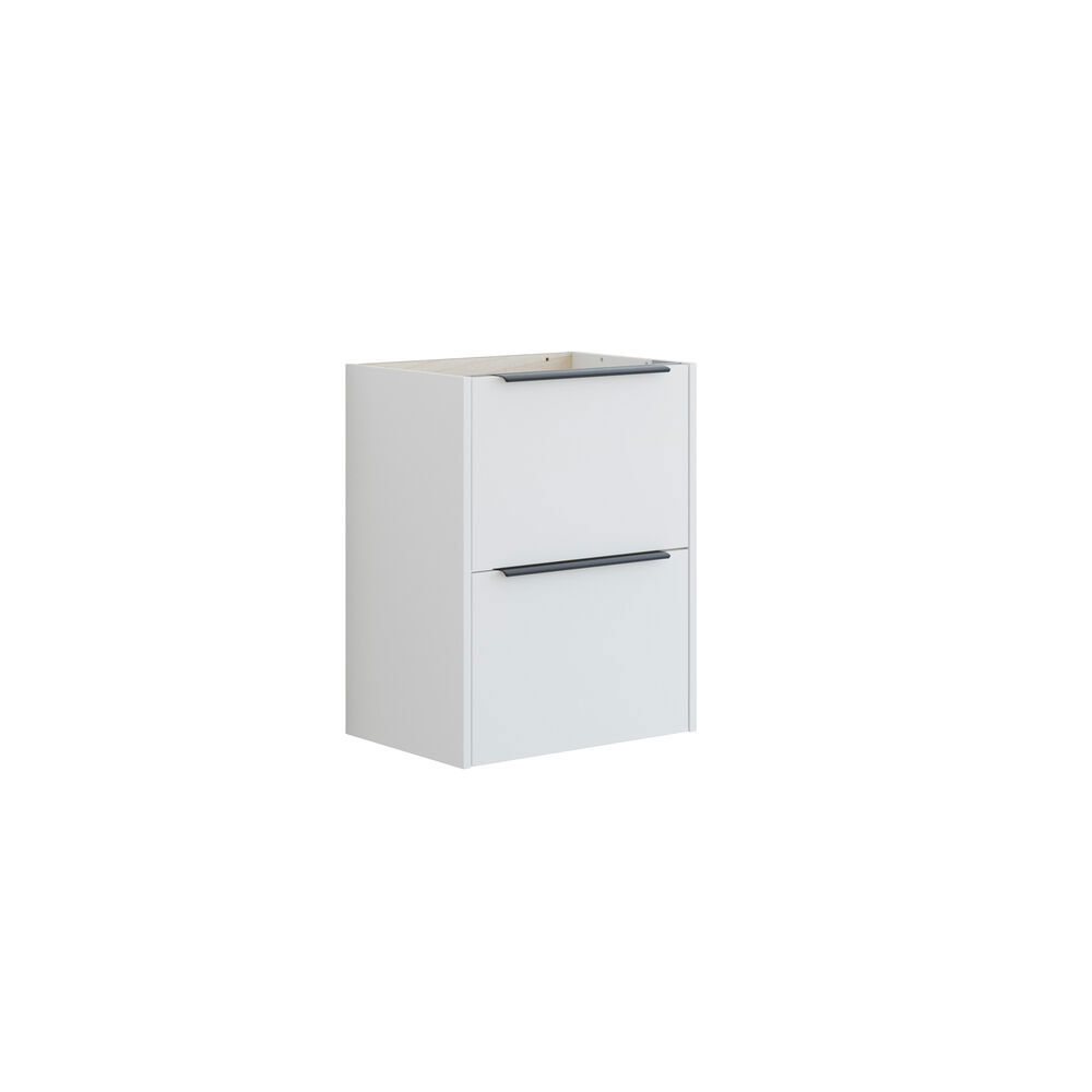 Despite its compact size, this vanity unit has two practical drawers that give you plenty of space and an overview of your belongings. The adjustable glides and soft-close function ensure that the drawers always close softly and silently. A black handle is included and completes the elegant look. The cabinet is available in two beautiful finishes: sand matte for a light and bright look - or brown oak for a more warm and natural feel.