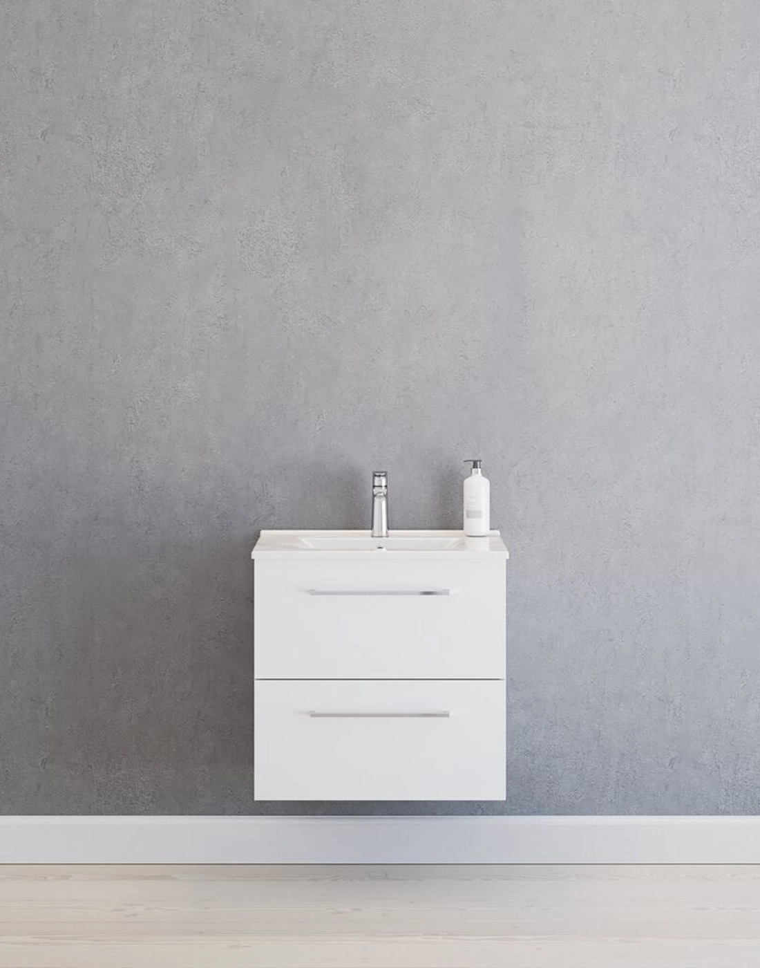 The Dansani Mido+ 2-drawer vanity unit is Danish design at an affordable price. Mido+ is our affordable range, but there's no compromise on design or quality. In this beautiful vanity unit you get 2 drawers for storing your bathroom products, and of course, this vanity unit is also available in many different options. The Dansani Mido+ vanity unit is available in a wide range of colours, so you can get a vanity unit that matches your bathroom and your personal style. All Mido+ cabinets come with the classic Base handle in chrome. You can choose a different handle for a different look, but remember that it must be ordered together with your furniture. Remember to add the little practical things to your bathroom furniture that you will enjoy on a daily basis. For example, lights and drawer dividers in drawers.