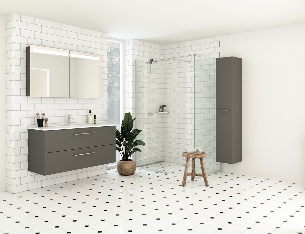 The Dansani Mido+ 2-drawer vanity unit is Danish design at an affordable price. Mido+ is our affordable range, but there's no compromise on design or quality. In this beautiful vanity unit you get 2 drawers for storing your bathroom products, and of course, this vanity unit is also available in many different options. The Dansani Mido+ vanity unit is available in a wide range of colours, so you can get a vanity unit that matches your bathroom and your personal style. All Mido+ cabinets come with the classic Base handle in chrome. You can choose a different handle for a different look, but remember that it must be ordered together with your furniture. Remember to add the little practical things to your bathroom furniture that you will enjoy on a daily basis. For example, lights and drawer dividers in drawers.