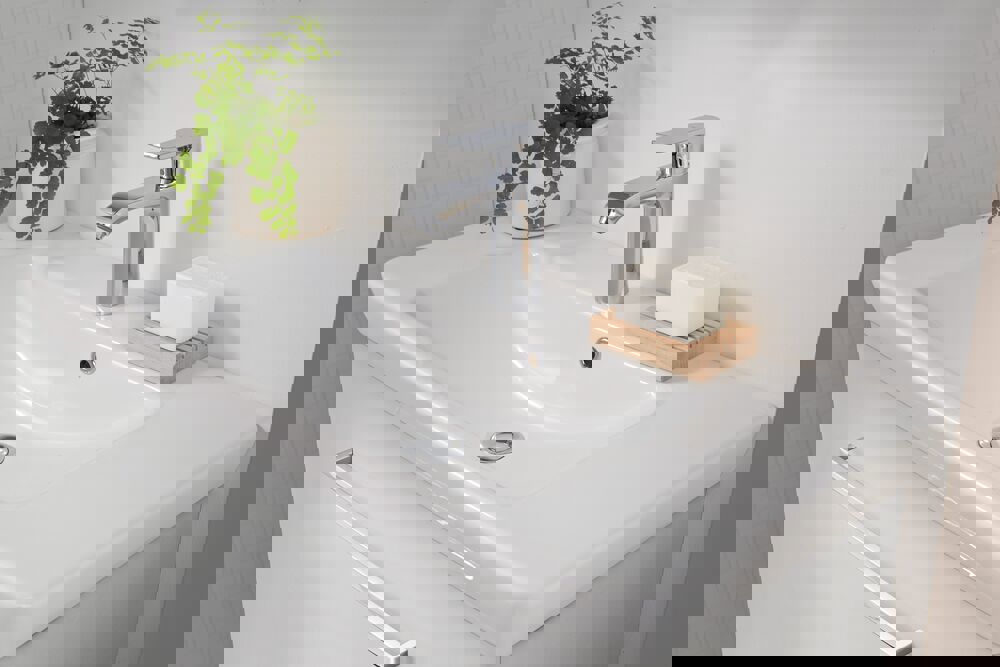 Dansani Mido+ is the feeling of luxury at an affordable price, and here you get a 2-drawer vanity unit. This beautiful vanity unit is only 35cm projection and is therefore designed to fit perfectly into smaller bathrooms or guest bathrooms. The Dansani Mido+ vanity unit is Danish design at an attractive price, and of course you'll also find several smart options such as drawer lighting and wooden trays for storage. With the Dansani Mido+ 2-drawer vanity unit, you not only get functionality and storage, but also the freedom to create your dream bathroom. Please note that this vanity unit has two cut-outs to suit floor exiting wastes. All Mido+ cabinets come with the classic Base handle in chrome. You can choose a different handle for a different look, but remember that it must be ordered together with your furniture. Remember to add the little practical things to your bathroom furniture that you will enjoy on a daily basis. For example, lights and drawer dividers in drawers.