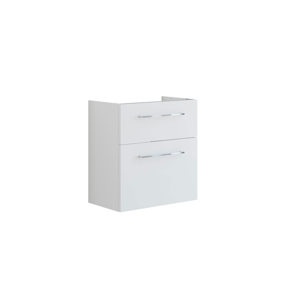 This elegant vanity unit combines compact size with great functionality. The 60 cm width gives you more space without compromising on the airy feel of the bathroom. The two fully extendable drawers provide plenty of storage options and the adjustable sliding system ensures a gentle and quiet closing - every time. The top drawer is cut out for easy installation of a water trap. Perfect for those who want both design and functionality in everyday life.