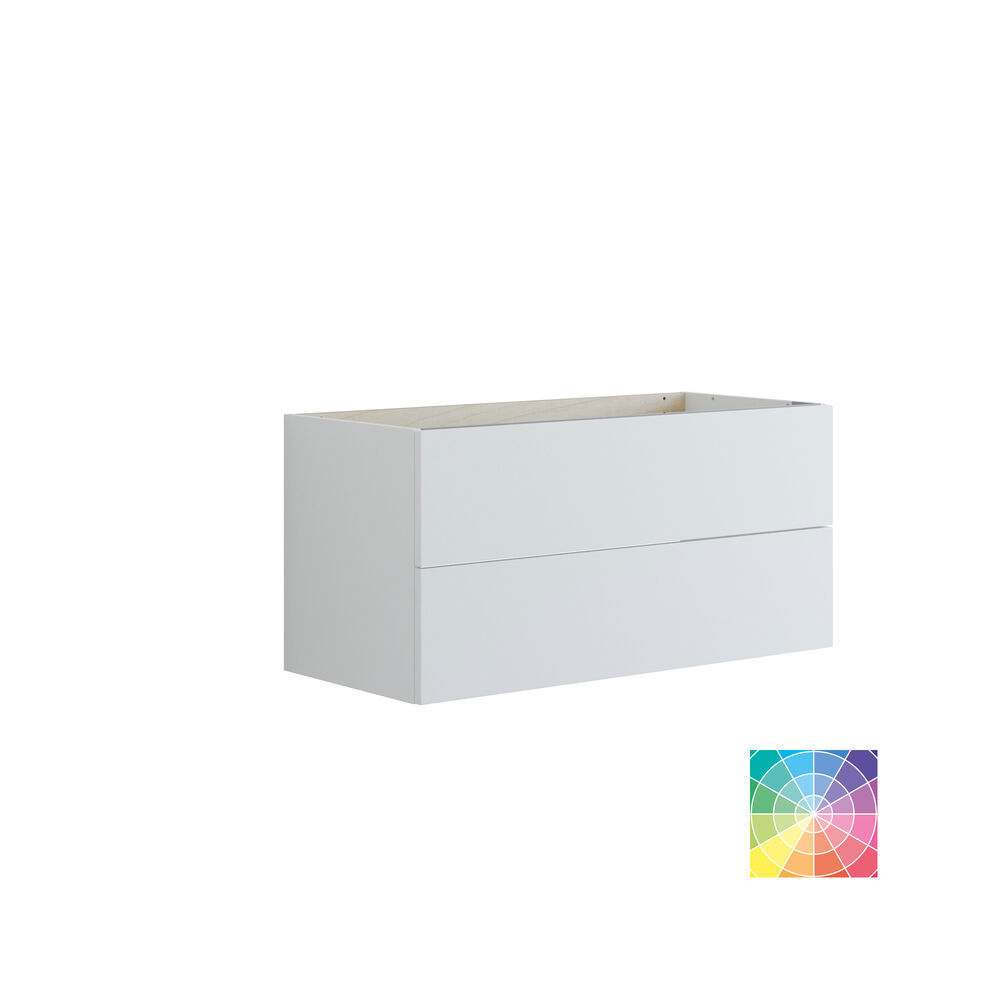 The 2-drawer vanity unit is a simple upgrade for your bathroom. This stylish unit stands 48 cm high and has a projection of 44 cm, making it perfect for organizing your belongings. Choose from a variety of colors to match your style. The vanity unit offers intelligent storage for your bathroom products, helping you stay organized with ease. With the 2-drawer vanity unit, you get both functionality and a beautiful addition to your bathroom. Enhance your space with elegance and organization using this stunning vanity unit. NB: There is a start-up fee (BI2) for products with bespoke colour. It is an one-off surcharge per bespoke colour regardless number of products. Remember to add the little practical things to your bathroom furniture that you will enjoy on a daily basis. For example, lights in drawers and cabinets, built-in electrical sockets and dimmed sensor lights under the furniture to guide night-time bathroom visits. Options are ordered at the same time as your furniture.