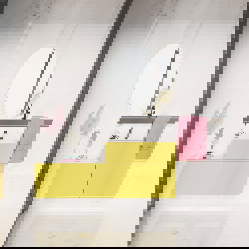 The 2-drawer vanity unit is 64 cm high and features an extra deep bottom drawer, providing ample storage space. Choose from a variety of colors to match the vanity unit to your personal style. With this unit, you can easily organize your bathroom items and keep everything neat and tidy. The 2-drawer vanity unit offers both practical functionality and a beautiful addition to your bathroom. Make your space more organized and elegant with this stunning vanity unit. NB: There is a start-up fee (BI2) for products with bespoke colour. It is an one-off surcharge per bespoke colour regardless number of products. Remember to add the little practical things to your bathroom furniture that you will enjoy on a daily basis. For example, lights in drawers and cabinets, built-in electrical sockets and dimmed sensor lights under the furniture to guide night-time bathroom visits. Options are ordered at the same time as your furniture.