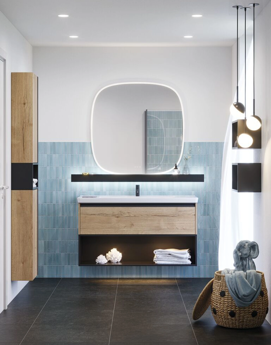 Give your bathroom a modern touch with a wall cabinet featuring an integrated handle. The simple yet stylish design of this cabinet makes it an ideal solution for optimizing space. The two glass shelves provide the opportunity to showcase your bathroom items while keeping them organized. With this wall cabinet, you get not only practical storage but also a beautiful detail that can be combined with an open shelf, adding both functionality and aesthetics to your bathroom. NB: There is a start-up fee (BI2) for products with bespoke colour. It is an one-off surcharge per bespoke colour regardless number of products. Remember to add the little practical things to your bathroom furniture that you will enjoy on a daily basis. For example, lights in drawers and cabinets, built-in electrical sockets and dimmed sensor lights under the furniture to guide night-time bathroom visits. Options are ordered at the same time as your furniture.
