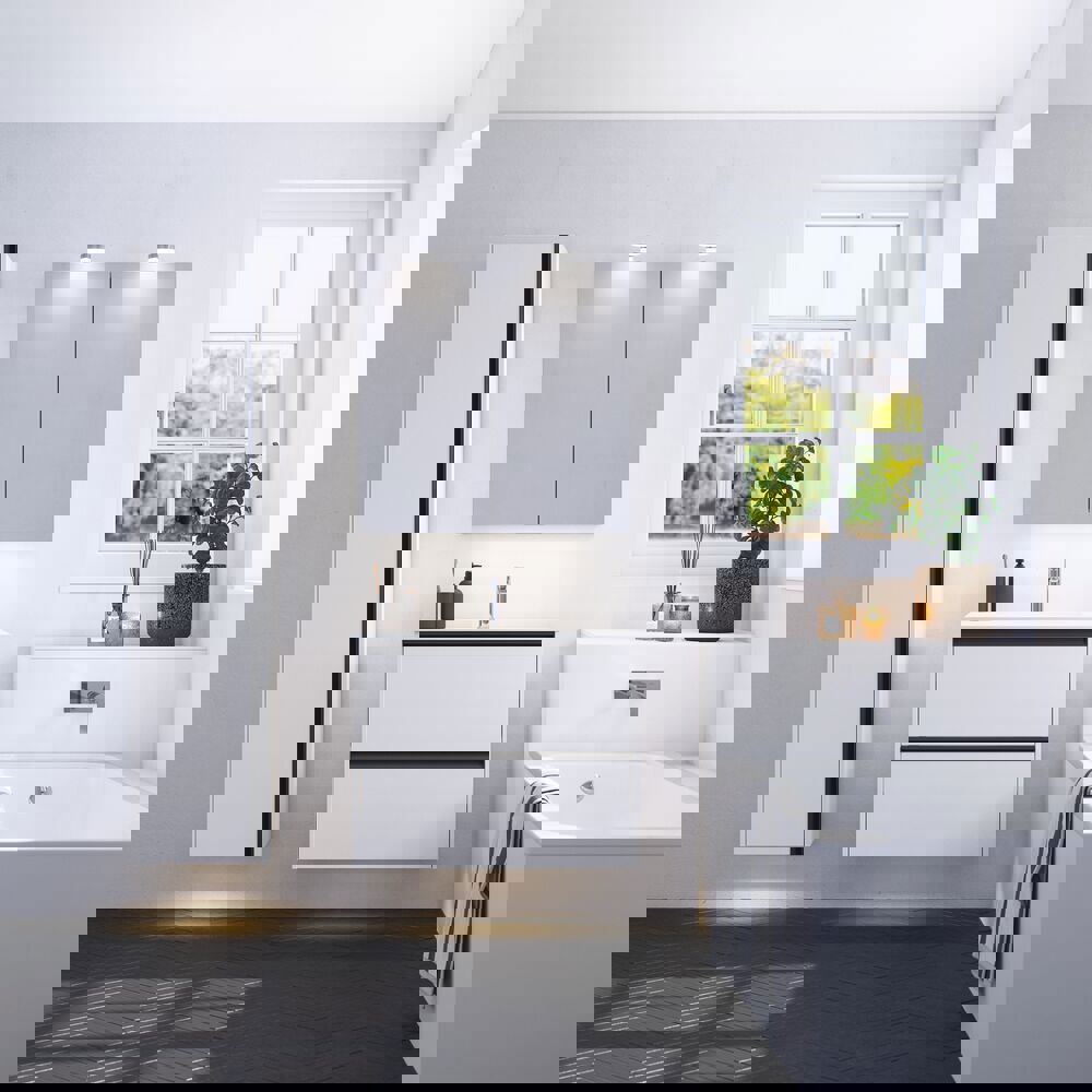 Give your bathroom a modern touch with a wall cabinet featuring an integrated handle. The simple yet stylish design of this cabinet makes it an ideal solution for optimizing space. The two glass shelves provide the opportunity to showcase your bathroom items while keeping them organized. With this wall cabinet, you get not only practical storage but also a beautiful detail that can be combined with an open shelf, adding both functionality and aesthetics to your bathroom. NB: There is a start-up fee (BI2) for products with bespoke colour. It is an one-off surcharge per bespoke colour regardless number of products. Remember to add the little practical things to your bathroom furniture that you will enjoy on a daily basis. For example, lights in drawers and cabinets, built-in electrical sockets and dimmed sensor lights under the furniture to guide night-time bathroom visits. Options are ordered at the same time as your furniture.