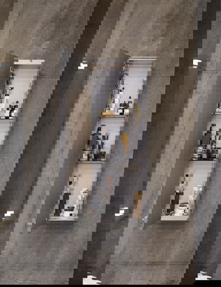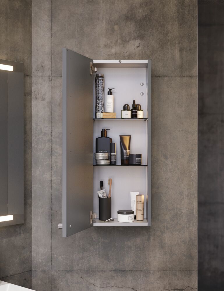 Declutter and organise your bathroom with wall cabinets. Available with 2 glass shelves, this smart cabinet is both stylish and functional. Use the cabinet for storage in your bathroom to keep your creams, deodorants, etc. organised. The cabinet is available in many different colours to match the rest of your bathroom, of course. NB: There is a start-up fee (BI2) for products with bespoke colour. It is an one-off surcharge per bespoke colour regardless number of products. Remember to add the little practical things to your bathroom furniture that you will enjoy on a daily basis. For example, lights in drawers and cabinets, built-in electrical sockets and dimmed sensor lights under the furniture to guide night-time bathroom visits. Options are ordered at the same time as your furniture.