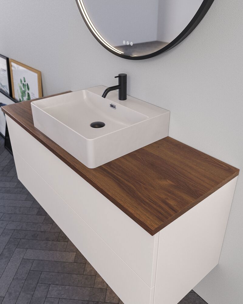 Laminate worktops for the Dansani Luna range add both function and style to your bathroom. With a design that perfectly matches the modern look of Dansani Luna, laminate worktops provide a durable and practical surface for your bathroom. Laminate is known for its resistance to wear, stains and moisture, making it ideal for an area like the bathroom. Dansani Luna laminate worktops are available in a variety of colours and textures to suit your personal taste and decor
