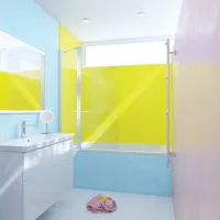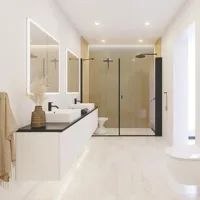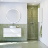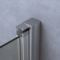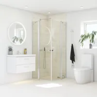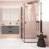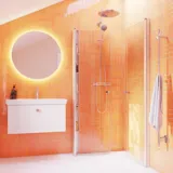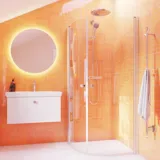 Shower panels which allow optimal use of space, as it is possible to place furniture right up the shower panel, so you have space for a wider basin or an extra cabinet. Two fixed shower panels form a walk-in with lots of space.