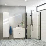 In a small room you can use the space optimally by choosing the hinged shower door with in-line shower panel. The Dansani Match shower doors fold inwards to save space